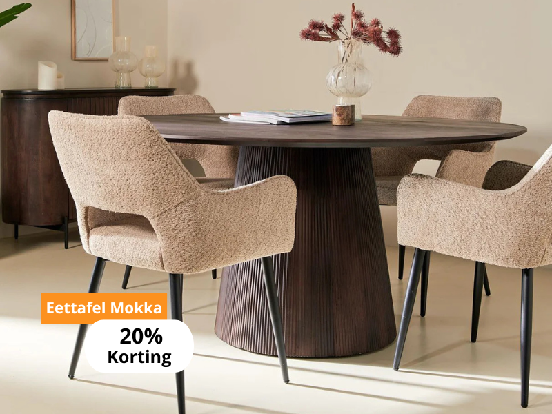 Alle gegevens bekijkenEettafel Mokka Donkerbruin is de perfecte combinatie van stijl en functionaliteit voor je eetkamer. Met een diameter van 150 cm biedt deze ronde ta...