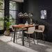 Het bovenblad van de bartafel is vervaardigd uit 25 mm dik massief acaciahout en afgewerkt met een matte transparante lak. Deze afwerking beschermt het hout tegen vocht en vuil, waardoor de tafel zijn natuurlijke schoonheid behoudt. Het stevige U-frame van grijs gepoedercoat staal zorgt voor een stabiele basis en voegt een eigentijds tintje toe aan het geheel.