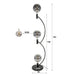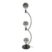 De vloerlamp is vervaardigd uit metaal en heeft een bronskleurige finish. Het ontwerp kenmerkt zich door een vloeiende vorm en is voorzien van drie fittingen die geschikt zijn voor grote bolvormige lichtbronnen.