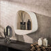 Het wandschap is vervaardigd uit marmercomposiet en wordt stevig aan de wand bevestigd met een metalen strip. Hierdoor hangt het strak tegen de muur en biedt het een solide en esthetisch verantwoorde opbergoplossing.