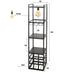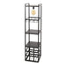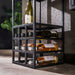 De vloerlamp is voorzien van een rechthoekig metalen frame met een elegante charcoal finish. Het beschikt over één lichtpunt in het bovenste vak, wat zorgt voor een sfeervolle verlichting. De lamp biedt ruimte voor het ophangen van wijnglazen, heeft een open vak en biedt plaats voor 9 wijnflessen. Bovenop de lamp is er extra ruimte om decoratieve items of andere spullen te plaatsen.