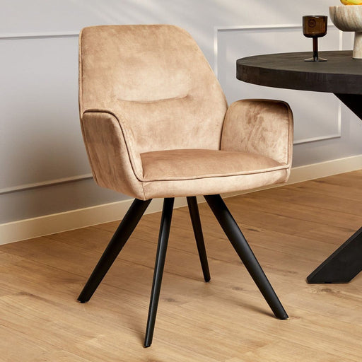 Eetkamerstoel Nova in beige velvet is een stijlvolle toevoeging aan ieder interieur. De zachte velvet bekleding voelt luxe en comfortabel aan en ge...
