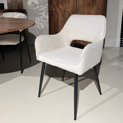 Alle gegevens bekijkenDesign & materiaalDe Armstoel Salon is uitgevoerd in een luxe bouclé bekleding en staat op een stevig metalen onderstel. De combinatie van hoog...