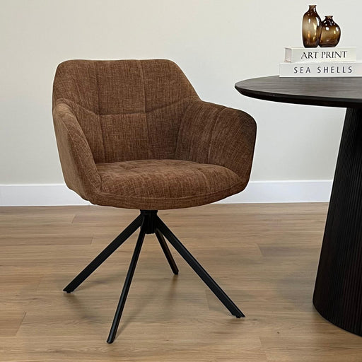 Alle gegevens bekijkenEetkamerstoel Jesse in de kleur Choco heeft een warme en stijlvolle uitstraling en biedt uitstekend zitcomfort. De stof voelt zacht aan en geeft d...
