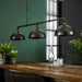Deze unieke 3-lichts hanglamp is een echte blikvanger in elk interieur. Het industriële ontwerp met waterleidingbuizen en halfronde metalen kappen geeft een stoere uitstraling die perfect past in moderne en industriële woonstijlen.