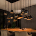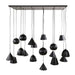 De hanglamp is uitgevoerd in metaal en heeft meerdere verschillende kappen, wat zorgt voor een speels en dynamisch effect. De kappen zijn afzonderlijk van elkaar tot 150 cm in hoogte verstelbaar, waardoor u de lamp geheel naar eigen wens kunt aanpassen.