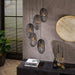 De hanglamp is voorzien van vijf half opengewerkte kappen in de vorm van een oog. De kappen kunnen op ongelijke hoogtes worden gehangen, wat zorgt voor een speels effect. Het licht schijnt subtiel door het open 'oog', wat een sfeervolle verlichting creëert. De kappen zijn afzonderlijk tot 180 cm in hoogte verstelbaar, waardoor u de lamp naar wens kunt aanpassen.