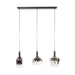 De hanglamp bestaat uit drie pendels met een metalen armatuur in artic black. De glazen kappen hebben elk een eigen vorm en zijn afgewerkt met een subtiel chrome kleurverloop dat het licht op een zachte manier verspreidt. Elke lamp is afzonderlijk in hoogte verstelbaar tot 150 cm.