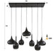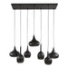 De hanglamp is uitgevoerd in metaal en heeft een artic black finish. De zeven verschillende kappen zijn afzonderlijk in hoogte verstelbaar tot 150 cm, waardoor u de verlichting naar wens kunt aanpassen. De gaatjes in de kappen zijn met de hand geëtst, wat zorgt voor een unieke uitstraling en een bijzondere lichtval.