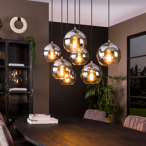Alle gegevens bekijkenDeze eigentijdse hanglamp is een echte eye-catcher! Uitgevoerd in amber glas met 7 verschillende kapjes, biedt deze lamp een unieke uitstraling. De...