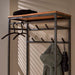Uitgevoerd in live edge acacia hout en metaal, beschikt dit garderobemeubel over acht haken, een roede, een schap en een schoenenrek. Het biedt voldoende ruimte voor al uw benodigdheden en voegt een moderne touch toe aan uw interieur.