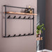 De kapstok is uitgerust met zes zwart geschuurde metalen haakjes, zowel aan de hoedenplank als aan de onderzijde, waardoor er voldoende ruimte is voor het ophangen van jassen en accessoires. Dankzij de twee bevestigingsoogjes aan de achterzijde is de kapstok eenvoudig aan de wand te monteren.