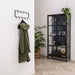 De kapstok is vervaardigd uit grijs gepoedercoat staal en beschikt over 9 haakjes. Dankzij de schuin boven elkaar geplaatste haakjes kunnen jassen gemakkelijk en verspreid worden opgehangen. Aan de achterzijde zijn twee bevestigingsogen aanwezig, waardoor de kapstok eenvoudig aan de wand te monteren is.