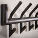 Gemaakt van gepoedercoat staal, beschikt deze wandkapstok over acht vaste haken die aan beide zijden bruikbaar zijn. Het ronde buisontwerp in mat donkergrijs zorgt voor een moderne uitstraling. De kapstok wordt volledig opgebouwd geleverd en kan eenvoudig aan de muur worden bevestigd via twee bevestigingsogen.