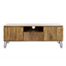 Dit stijlvolle tv-meubel is vervaardigd uit duurzaam mangohout en heeft een stevig metalen onderstel. Het meubel biedt een perfecte combinatie van functionaliteit en design, ideaal voor elke moderne woonkamer.