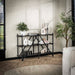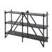 Het wandrek is vervaardigd uit MDF planken met een donker grijze liquid metal finish, gecombineerd met een stevig donker grijs metalen frame. De drie ruime schappen bieden voldoende ruimte voor al uw benodigdheden. Het rek wordt gedemonteerd geleverd, wat zorgt voor een efficiënte en compacte verzending.