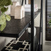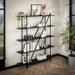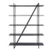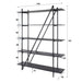 Het wandrek is vervaardigd uit MDF planken met een verfijnde donker grijze liquid metal finish, gecombineerd met een stevig donker grijs metalen frame. Het beschikt over vijf ruime schappen die ideaal zijn voor het opbergen van boeken, decoraties of andere items. Dankzij het demontabele ontwerp kan het rek eenvoudig in een compact pakket worden verzonden.
