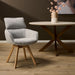Eetkamerstoel Jona in beige stof is een moderne en comfortabele stoel die in bijna elk interieur past. De zachte bekleding en speels gevormde rugleuning geven de stoel een warme en eigentijdse uitstraling. Dankzij de armleuningen en het draaibare onderstel is Jona niet alleen praktisch, maar ook heel comfortabel voor lange avonden aan tafel.