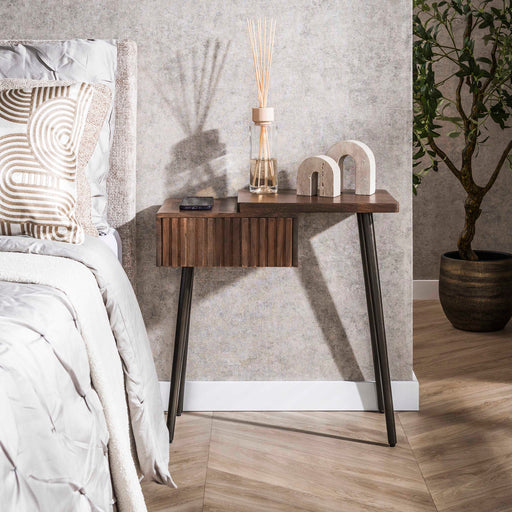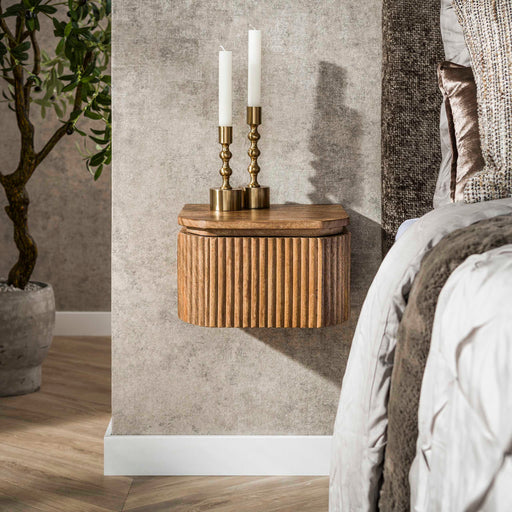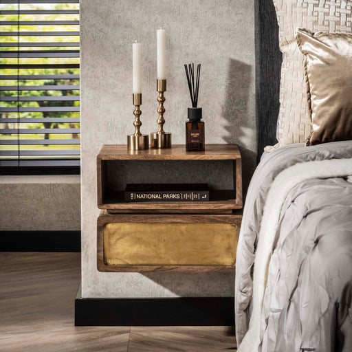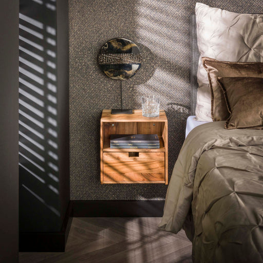 Alle gegevens bekijkenDit compact, zwevend nachtkastje is een stijlvolle toevoeging aan elke slaapkamer. Gemaakt van massief duurzaam mangohout, straalt het een natuurli...