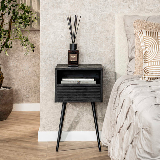 Alle gegevens bekijkenDit nachtkastje is een stijlvolle toevoeging aan elke slaapkamer. Het is vervaardigd uit hoogwaardig mangohout en heeft een elegante zwarte finish....