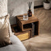 Creëer een stijlvolle en ruimtebesparende oplossing in uw slaapkamer met deze set van twee hangende nachtkastjes. Gemaakt van massief duurzaam mangohout en voorzien van een echt messing beslag, voegen deze nachtkastjes een vleugje elegantie toe aan elke ruimte. Het licht geantiqueerde messing zorgt voor een verfijnde uitstraling, terwijl de praktische indeling met één lade en één open vak voldoende opbergruimte biedt.