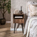 Het nachtkastje is vervaardigd uit massief acaciahout met een drift brown finish. Het beschikt over een stevige lade en een open vak, ideaal voor het opbergen van boeken of andere benodigdheden. Het metalen onderstel is gepoedercoat in een bijpassende bronzen kleur, wat zorgt voor een harmonieuze look.