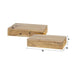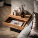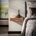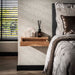 De set is uitgevoerd in massief acaciahout met een uniek wave-patroon. Het hout is afgewerkt met een matte, transparante lak, wat zorgt voor een natuurlijke uitstraling en bescherming van het materiaal. Het nachtkastje wordt eenvoudig met twee schroeven aan de wand gemonteerd.