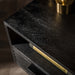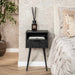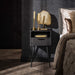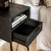 Gemaakt van gladgeschuurd mangohout met een zwarte finish, biedt dit nachtkastje een strak en elegant uiterlijk. Het beschikt over één lade en één open vak, ideaal voor het opbergen van boeken, accessoires of andere persoonlijke items. De metalen poten geven het geheel een industriële touch.
