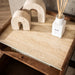 Het nachtkastje is gemaakt van massief mangohout en heeft een blad met een luxe ceramic afwerking in travertine look. De lade en het open vak bieden voldoende opbergruimte voor al uw benodigdheden.