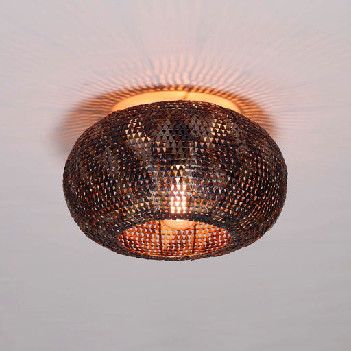 Alle gegevens bekijkenDeze plafondlamp heeft een uniek en eigentijds design. De geperforeerde structuur in combinatie met de bronze binnenkant zorgt voor een sfeervolle ...