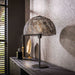 Deze tafellamp is een unieke toevoeging aan elk interieur. Met zijn ronde metalen kap en burned finish straalt de lamp een stijlvolle zwart/bruine kleur uit. De handgemaakte afwerking zorgt ervoor dat elke lamp uniek is. De gaatjes in de kap maken de lamp semi-transparant, waardoor het licht sfeervol door de ruimte wordt verdeeld.