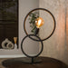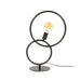 Deze stijlvolle tafellamp is een ware blikvanger in elk interieur. Het unieke ontwerp met twee in elkaar grijpende metalen lussen creëert een modern en grafisch silhouet dat perfect past in een eigentijdse inrichting.