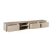 Het tv-meubel beschikt over twee open vakken, ideaal voor media-apparatuur, en drie greeploze lades voor het netjes opbergen van accessoires. De strakke, greeploze afwerking geeft het meubel een rustige en minimalistische uitstraling.