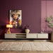 Het tv-meubel beschikt over twee open vakken, ideaal voor media-apparatuur, en drie greeploze lades voor het netjes opbergen van accessoires. De strakke, greeploze afwerking geeft het meubel een rustige en minimalistische uitstraling.