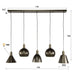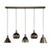 Creëer een sfeervolle ambiance in uw interieur met deze stijlvolle hanglamp. De unieke combinatie van vijf metalen kappen in diverse vormen zorgt voor een eigentijdse uitstraling die perfect past in elke moderne ruimte.