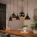Deze hanglamp is uitgevoerd in de kleur Sienna bruin en beschikt over een plafondplaat in een bijpassende tint. Elke lamp is afzonderlijk in hoogte verstelbaar tot 150 cm, waardoor u de verlichting naar wens kunt aanpassen.