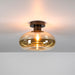 Deze plafondlamp is voorzien van een ronde glazen kap in amberkleurig glas, wat zorgt voor een warme en uitnodigende lichtuitstraling. Het armatuur is uitgevoerd in metaal met een elegante bronzen finish, wat een tijdloze en luxe uitstraling geeft.