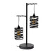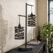 De tafellamp beschikt over twee spindle kappen en een rechthoekig armatuur, wat zorgt voor een bijzondere lichtverdeling. Het metalen ontwerp is afgewerkt in een stijlvolle slate grey met een vleugje bruin, waardoor het een elegante toevoeging is aan uw interieur.