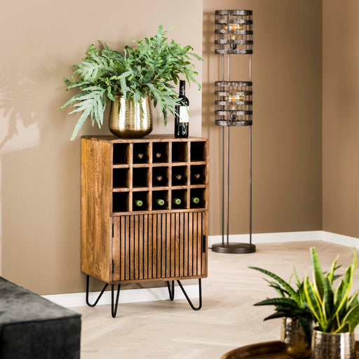 Alle gegevens bekijkenWijnkast Madison | Naturel 55 cm combineert een compact, modern ontwerp met praktische opbergruimte voor wijnliefhebbers. Gemaakt van massief mango...