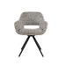 De trendy armstoel Spring combineert stijlvol design met optimaal zitcomfort. Het 360° draaibare metalen onderstel zorgt voor flexibiliteit en een moderne uitstraling. De stoel is bekleed met een grof geweven stof van gemêleerd slubgaren, wat een unieke textuur en uitstraling geeft.