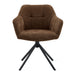 Eetkamerstoel Jesse in de kleur Choco heeft een warme en stijlvolle uitstraling en biedt uitstekend zitcomfort. De linnen-look stof voelt zacht aan en geeft de stoel een gezellige, uitnodigende sfeer. Dankzij de comfortabele schuimvulling en de ergonomisch gevormde zitting zit Jesse prettig, ook tijdens lange diners of gezellige avonden aan tafel. Het zwarte metalen onderstel zorgt voor een moderne en stevige basis. De stoel is 180 graden draaibaar en voorzien van een auto-return functie, waardoor hij na gebruik automatisch terugdraait naar zijn oorspronkelijke positie.