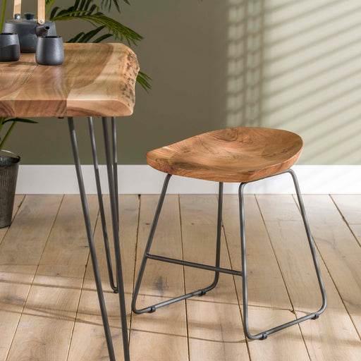 Kruk Ergo is een eigentijdse kruk met een lage zitting, vervaardigd uit acaciahout en afgewerkt met een matte transparante lak. Het gepoedercoate m...
