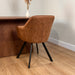 Eetkamerstoel Brione in cognackleurige microvezel heeft een uitnodigend ontwerp en zit lekker comfortabel. De zachte stof voelt fijn aan en is makkelijk schoon te houden. Door de ergonomische vorm van de zitting en de lichte ronding in de rugleuning zit Brione prettig, ook als je lang aan tafel blijft. Het slanke stalen onderstel maakt de stoel modern en stevig.