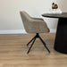 Zithoogte van 49 cm, zwart metalen onderstel voor stabiliteit en een moderne uitstraling. Verkrijgbaar in Taupe en Beige.